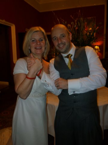 Congratulations to Mike and Beverly [Bev ] who got married last weekend here they are pictured at their reception ! For those of you with a good memory I photographed Mike outside the shop where he works a few weeks back [E.Jones and sons in Denbigh ] the shop was kind enough to donate a prize for our raffle , Mike and Andrew worked together for quite a number of years , unfortunately Andrew was unable to attend the wedding but just to let Andrew know that were thinking of him they posed for a picture ,they have promised to take a few pictures on their honeymoon for our travelling bands competition. Hope you have a brilliant time , wishing you lots of love laughter health and happiness ! All of Andrews family xxxxx